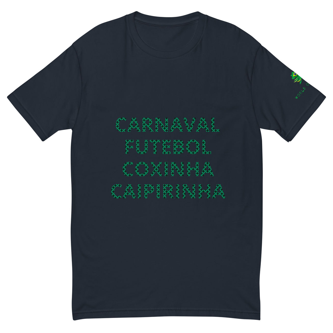 Celebrate the cultural icons that make Brazil truly unique with this exclusive t-shirt. Whether you're enjoying the thrill of futebol on a sunny afternoon, savoring the crispy goodness of a coxinha, dancing your heart out during Carnaval, or relaxing with a refreshing caipirinha in hand, this t-shirt captures the essence of it all.